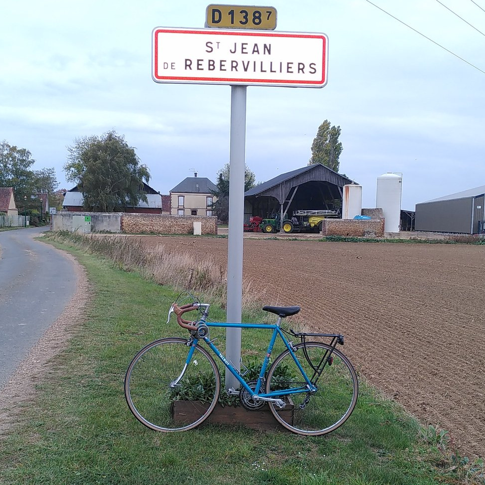 Voici donc quelle fût la quête que j'ai imaginée dans un recoin de ma tête, mijotée pendant de nombreuses années. Je me suis dit que j'allais partir de mon lieu de vie et aller voir la commune rurale de naissance de mon grand-père paternel, à Saint-Jean de Rebervilliers en utilisant un vélo. Pourquoi le vélo ? Parce qu'à l'aune de mon expérience, c'est un des seuls moyens de transport qui permet de vraiment ressentir les lieux: de mesurer le relief, de respirer les odeurs, d'embrasser la température extérieure, de prendre le temps de voir un paysage, le tout sans y passer non plus trop d'heures. Un mode de voyage compatible avec la découverte, à la fois suffisamment lent pour laisser la possibilité de découvrir beaucoup, mais aussi suffisamment rapide pour ne pas rentrer trop dans les détails et pouvoir avancer, faire des kilomètres.